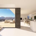 The predominance of white on the façade reinforces its minimalist style, whilst the combination with natural stone, ceramic cladding and large glazed surfaces creates a serene, welcoming and sophisticated aesthetic. All of this is in perfect harmony with the blue of the sea and the light of the Costa Blanca.